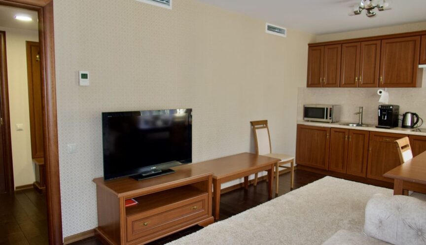 Оборудование: телевизор ЖК, мини-холодильник, телефон, электрочайник, набор посуды